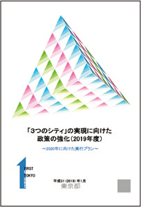 「『3つのシティ』の実現に向けた政策の強化(2019年度)2020年に向けた実行プラン」冊子(400円)を都民情報ルーム(都庁第一庁舎3階)で販売しています。ホームページからもダウンロードできます。