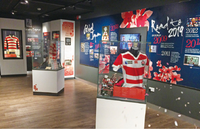 有楽町会場では、ラグビー体験に加え、日本代表の歴史に触れることができる、貴重なラグビージャージーなどを展示。ここでしか見ることができない「お宝」の数々が見られます。