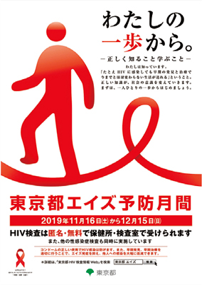 12月1日は「世界エイズデー」です。東京都では11月16日~12月15日を東京都エイズ予防月間とし、さまざまなHIV/エイズ予防啓発キャンペーンを行います。