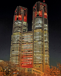 HIV/エイズへの理解と支援のシンボル「レッドリボン」にちなみ、都庁第一庁舎を赤にライトアップ。