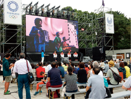 大会期間中、誰もが大型ビジョンによる競技の生中継を観戦し、大会の感動と興奮を共有できる場所です。