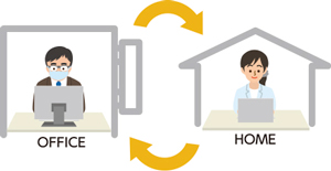 自宅やサテライトオフィスでの仕事、オンライン会議の活用を