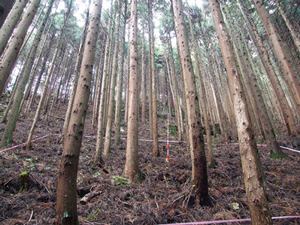 スギやヒノキの人工林は、適切に間伐することで幹は太く、根は広く深く発達し、台風等の自然災害に強い健全な姿を取り戻します。関心のある森林所有者の方は、森林所在地の市町村へお問い合わせください。