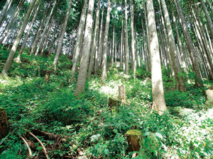 森林を良好な状態にするためには、間伐が効果的です。都では森林所有者と協定を結び、手入れの難しくなったスギ・ヒノキ林を間伐する「森林再生事業」を実施しています。