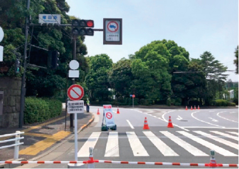 進入禁止エリアや通行規制エリア、迂回(うかい)エリアが設けられます。また、大会関係車両専用レーンや優先レーン等が設置されます。