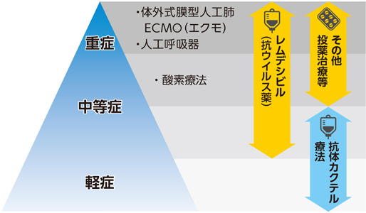 新型コロナウイルスに有効な2種類の抗体を混ぜ合わせ、点滴により投与する治療法です。