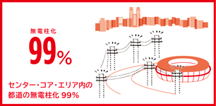 センター・コア・エリア内(首都高速中央環状線の内側)では、大会に向けて無電柱化を推進し、都道の99%が完了しました。災害に強い都市実現のため、2040年代の都道の無電柱化完了を目指します。