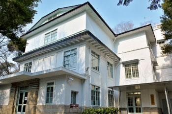 樹林側の階段を表示に従い上っていくと、永青文庫に通じる門にたどり着く。永青文庫では、細川家伝来の文化財を管理保存・研究し、さまざまなテーマで貴重なコレクションを展示している。建物は細川家の家政所(事務所)として昭和5年に建設されたもので、当時の階段や家具など内装も一見の価値がある。