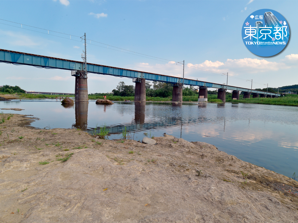 ▲水と自然と古代のクジラ 拝島の丘陵と多摩川(昭島市) |