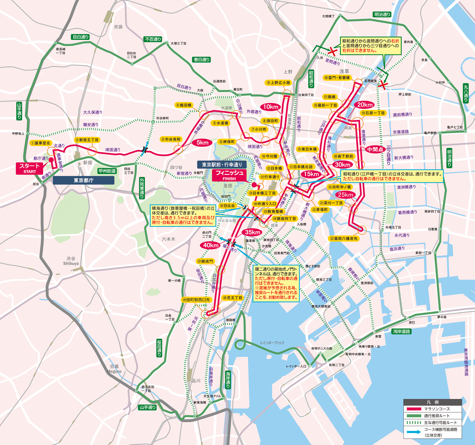 | 東京都庁周辺(スタート付近) | 都庁通り | 6時00分~10時15分 |