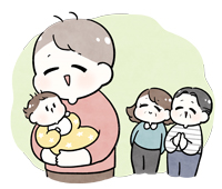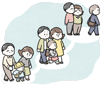 私も子育てする立場になり、わが子を社会全体で育ててもらっていることを日々実感しています。保育園の先生などはもちろんですが、仕事で関係している方々や、地域の方、街中ですれ違う方々のやさしさやあたたかさに救われることもたくさんあります。「子育てをしやすい街」というと色々な視点や捉え方があるかと思いますが、私が子育てを通して気づいた、身近なところにある他者へのやさしさをイラストに込めてみました。