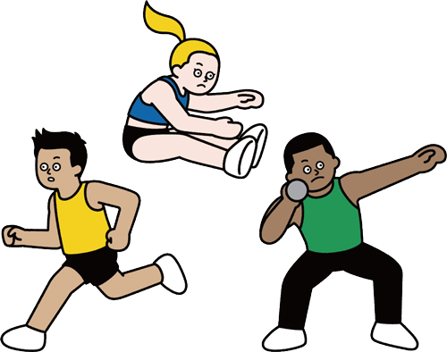 100メートル走や走幅跳、砲丸投げなど多岐にわたる種目。男子24種目、女子24種目、男女混合1種目