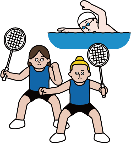 陸上/バドミントン/バスケットボール/ビーチバレーボール/ボウリング/自転車(ロード)/自転車(MTB)/サッカー/ゴルフ/ハンドボール/柔道/空手/オリエンテーリング/射撃/水泳/卓球/テコンドー/テニス/バレーボール/レスリング(フリースタイル)/レスリング(グレコローマン)