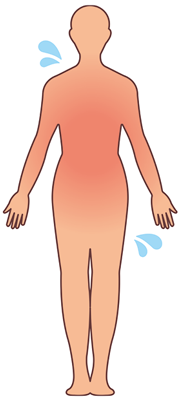 高温多湿な環境に長時間いることで、体温調節機能がうまく働かなくなり、体内に熱がこもった状態のことです。体内の水分や塩分のバランスが失われ、体にさまざまな不調をもたらし、場合によっては死亡することもあります。熱中症は屋外だけでなく、室内で静かに過ごしていても発症するため、正しい知識を身につけることが熱中症予防の第一歩です。