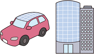 軽く、薄く、曲がる特徴を持つ太陽電池「次世代型ソーラーセル」。その特徴を活かすことで、ビルの壁面や車のルーフなど、さまざまな場所への設置が期待できます。