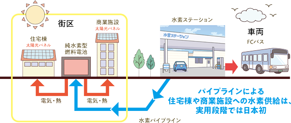 東京2020大会時に選手村であった晴海の再開発地区では、水素をまちのエネルギーとして先導的に導入するなど、環境先進都市のモデルとなるまちを目指しています。