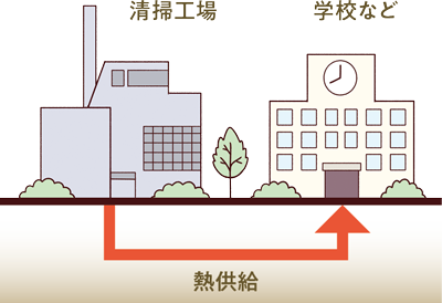 清掃工場のごみ焼却により発生する熱エネルギーを小学校の温水プール等の施設へ供給するなど、有効活用しています。
