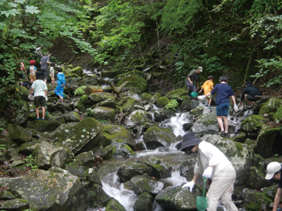 渓流のサンショウウオ観察と環境問題講座