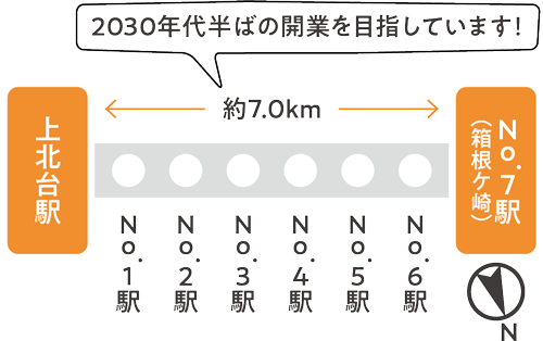 今回の計画では上北台駅がある東大和市から、武蔵村山市内を通過してJR箱根ケ崎駅がある西多摩郡瑞穂町大字箱根ケ崎まで延ばし、その区間には7つの駅(駅名は仮称)を整備する予定です。
