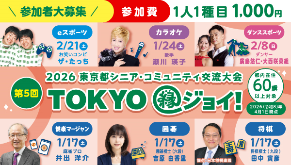 シニア世代の皆さんが日頃から親しんでいる趣味を通じた交流大会を開催します。