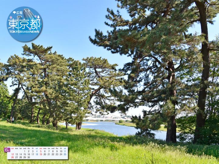多摩川沿い「五本松」(狛江市) ダウンロード(1366×768(JPG:1,311KB)、1024×768(JPG:1,014KB)) 6月カレンダー付はこちら(1366×768(JPG:1,302KB)、1024×768(JPG:1,005KB))