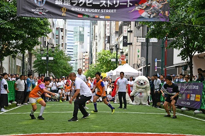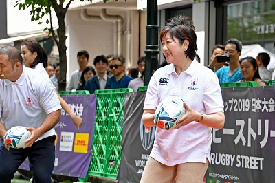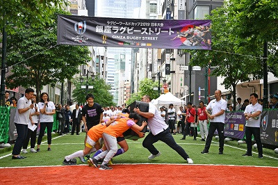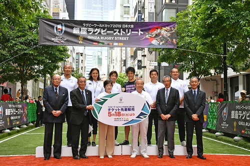 5月12日、たくさんの人で賑わう銀座みゆき通りで、「ラグビーワールドカップ2019TM日本大会 銀座ラグビーストリート PRイベント」が行われました。