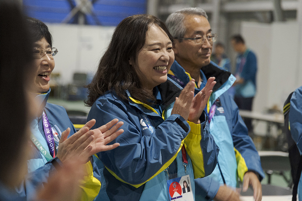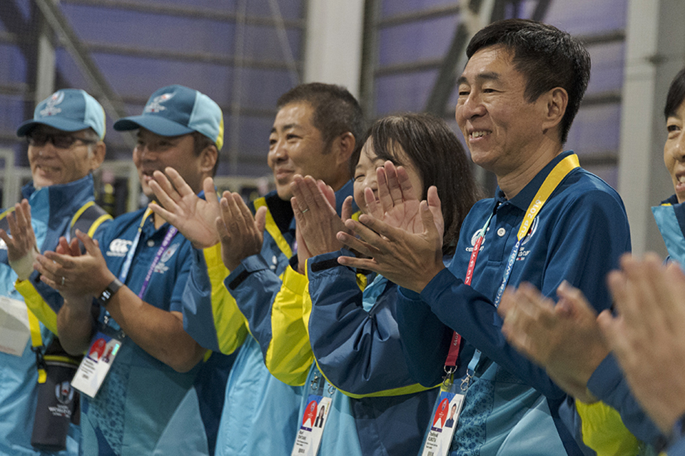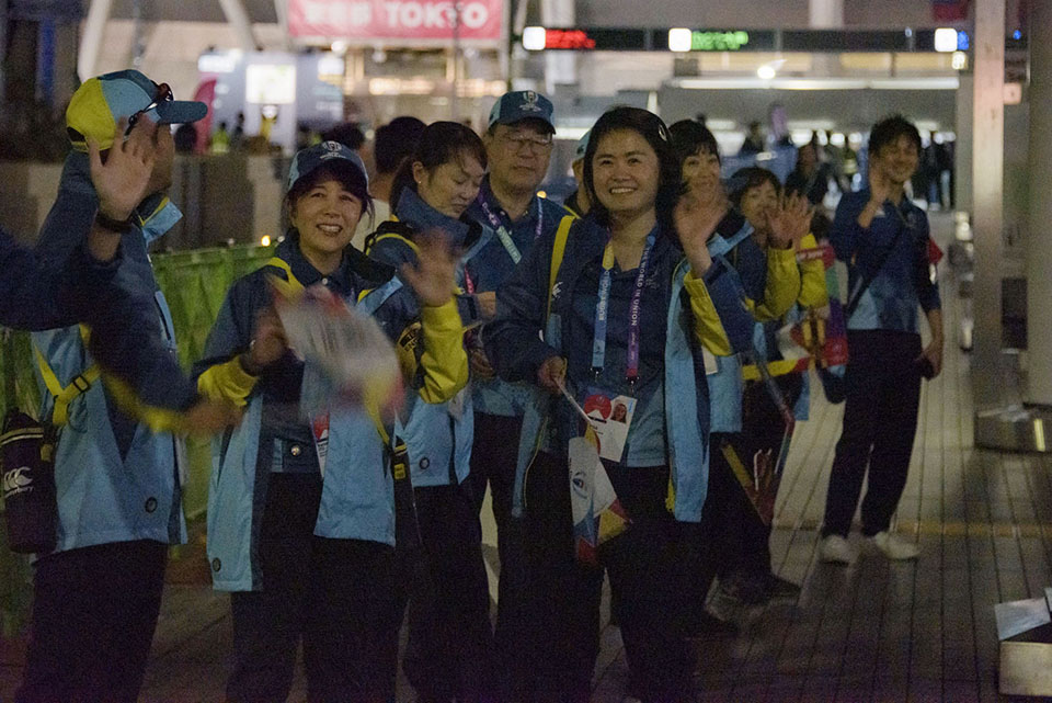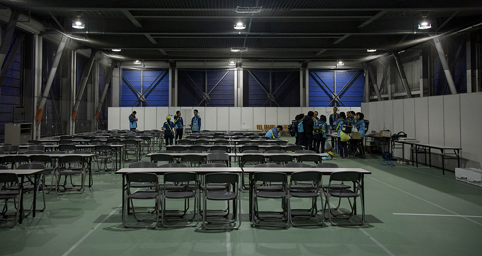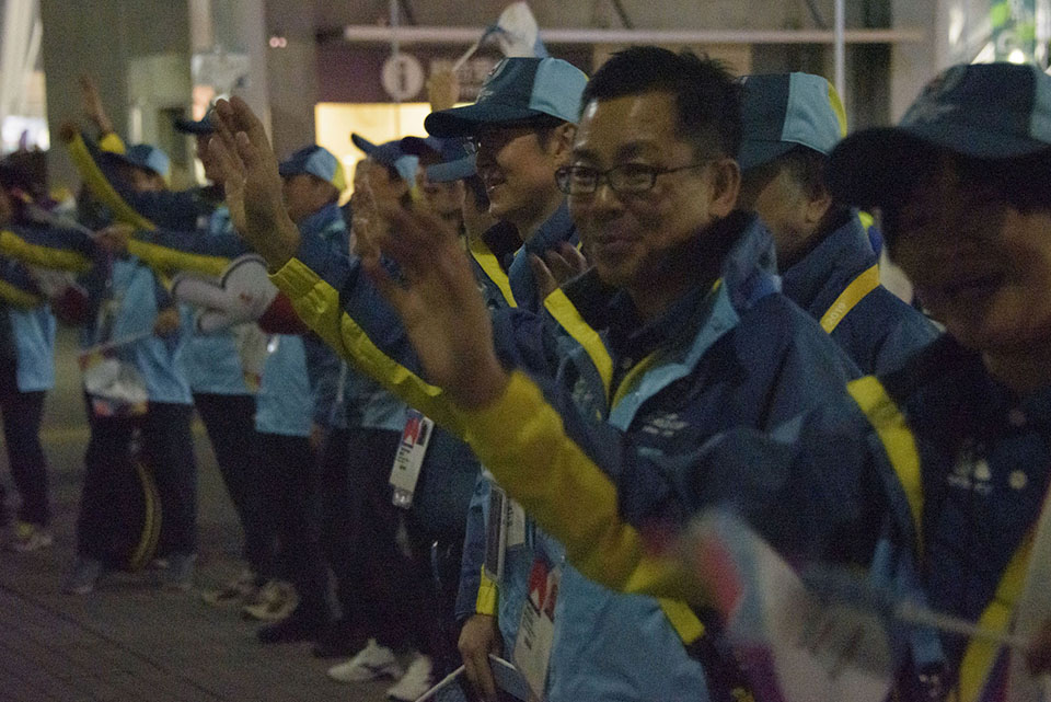 Scenes at the volunteer room after all the scheduled matches at the Tokyo Stadium were completed