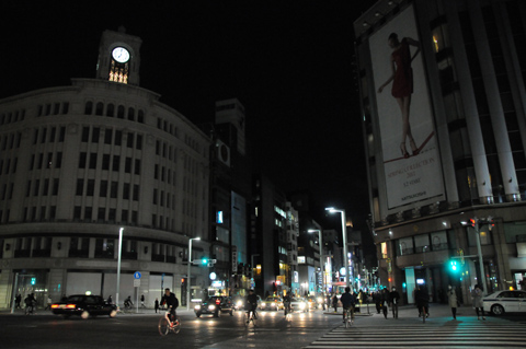 Tokyo was struck by power shortages following the Great East Japan Earthquake. On March 16, shortly after 6 p.m., almost all the stores lining Ginza Chuo-dori Avenue, one of Tokyo’s main shopping streets, had lowered their shutters, closing shop to save power. Even the ubiquitous neon lights were turned off in this “city that never sleeps.” In the darkness, bicycles rushing home and empty taxis had transformed the symbolic Ginza 4-chome intersection.