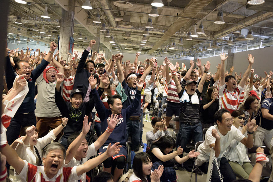 Fans watch Japan vs. Scotland at a Rugby World Cup 2019? Fanzone in Yurakucho