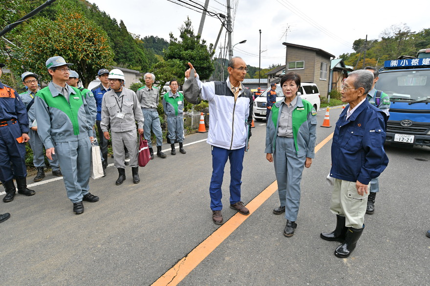 Governor Koike inspects the damage caused by Typhoon No. 19
