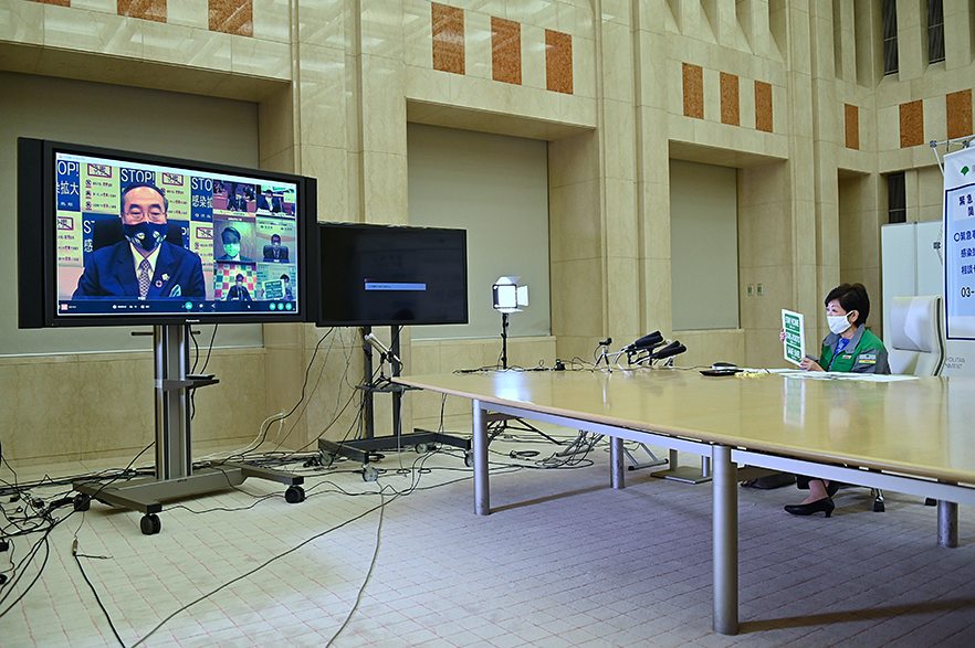Video conference with governors from across Japan to discuss the response to the coronavirus pandemic