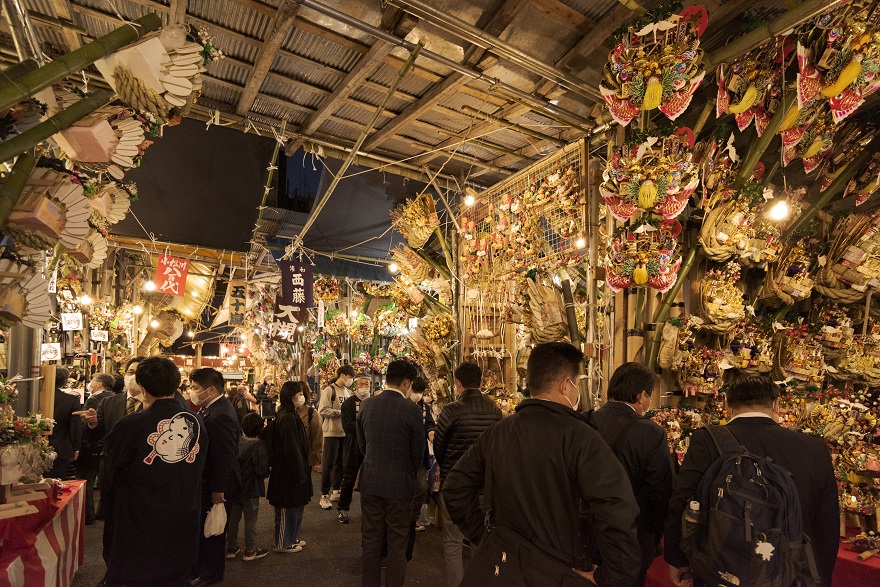 November.26, 2020 Tori-no-ichi open-air market at Ohtori Shrine, Asakusa, during the COVID-19 pandemic
