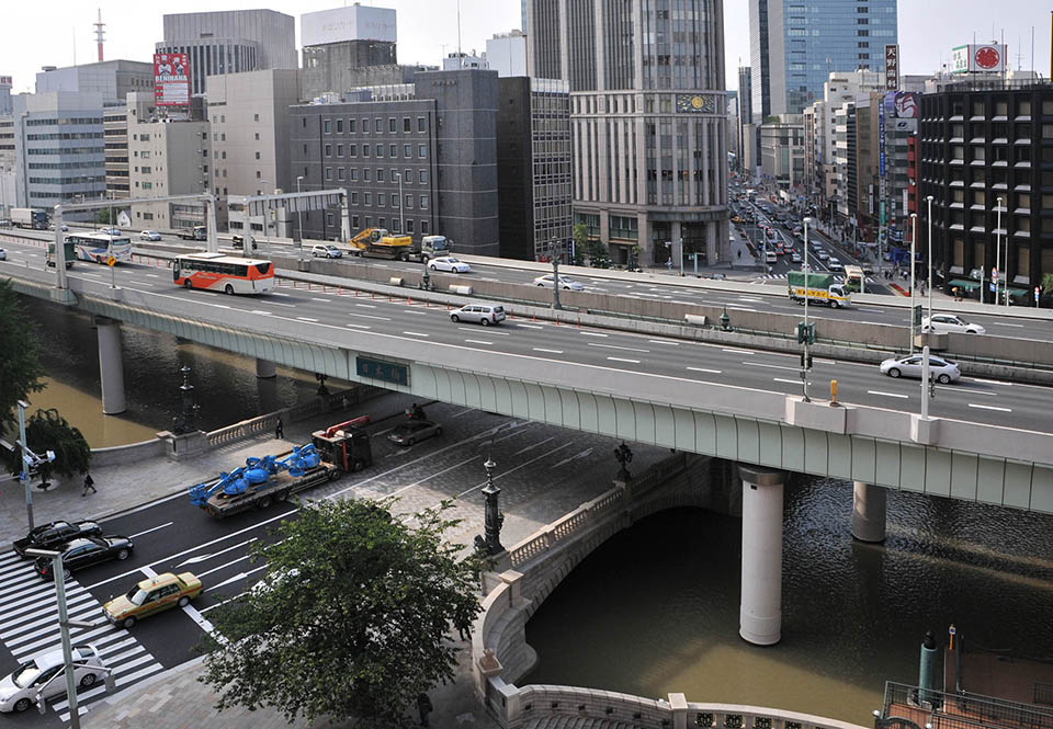 Nihonbashi, which is known as the starting point of Japan's road network. In 1963, an expressway was constructed right on top of a bridge, greatly changing the landscape of Nihonbashi.