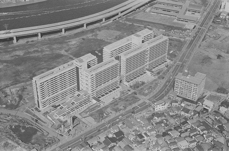 Shirahige West district redevelopment (Arakawa Ward) (aerial photograph), 02/1999