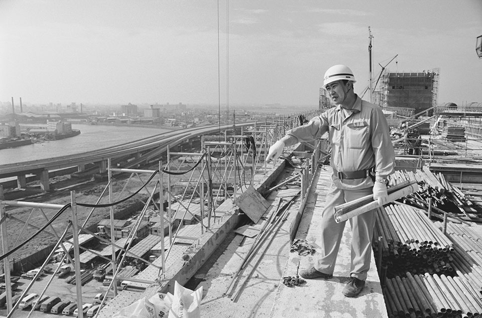 Keio Plaza Hotel in Shinjuku subcenter under construction (aerial photograph), 07/1970