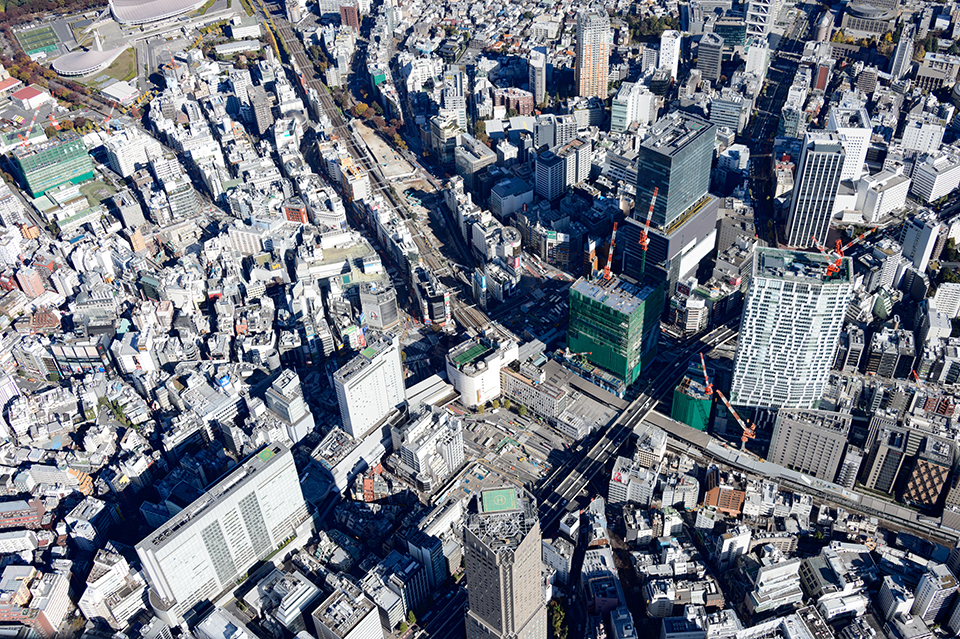 Shibuya area undergoing redevelopment (aerial photograph), 11/2017