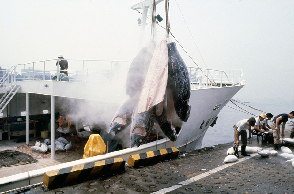 Unloading tuna for the Central Wholesale Market (Tsukiji Market), 12/1988