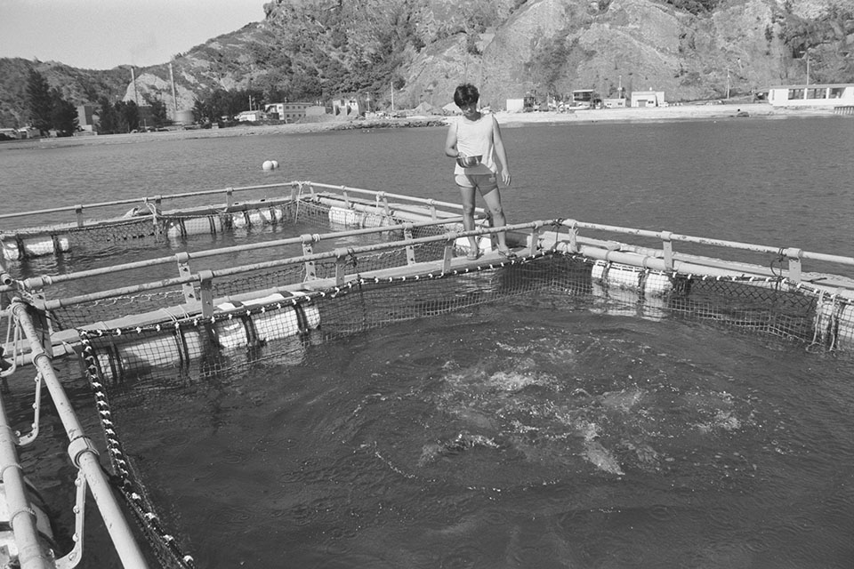 Tokobushi aquaculture at the Fisheries Experimental Station (Hachijojima), 08/1995