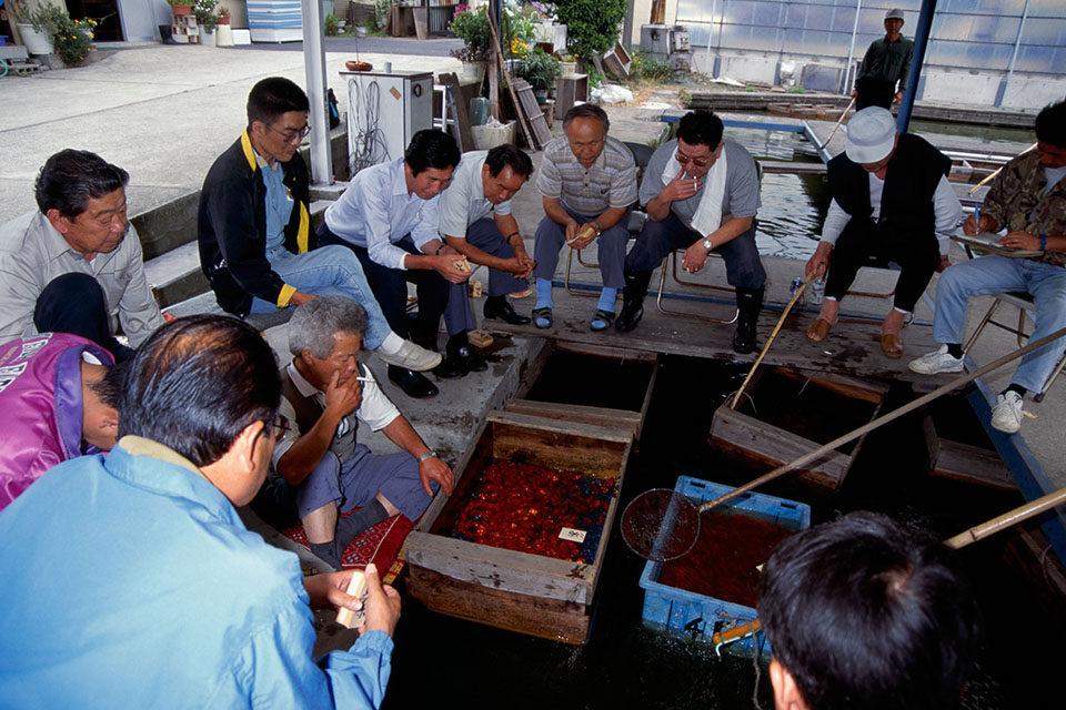 Goldfish sorting at the Fisheries Experimental Station (Fisheries Experimental Station, Katsushika Ward), 02/1987