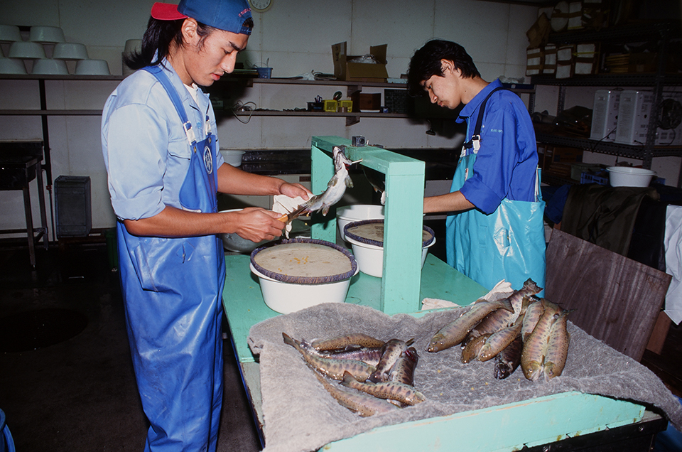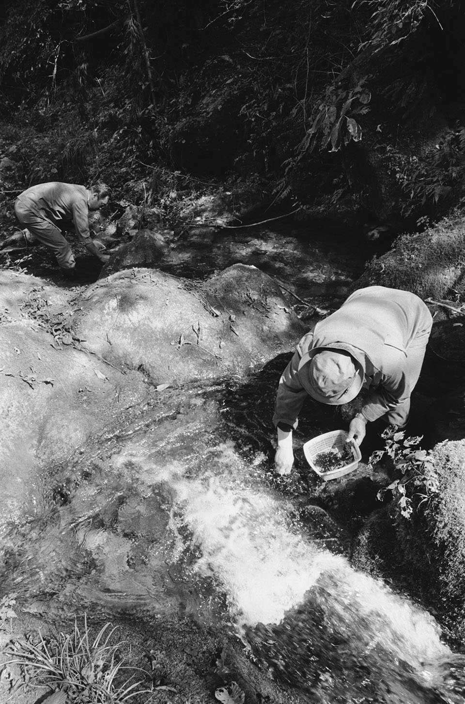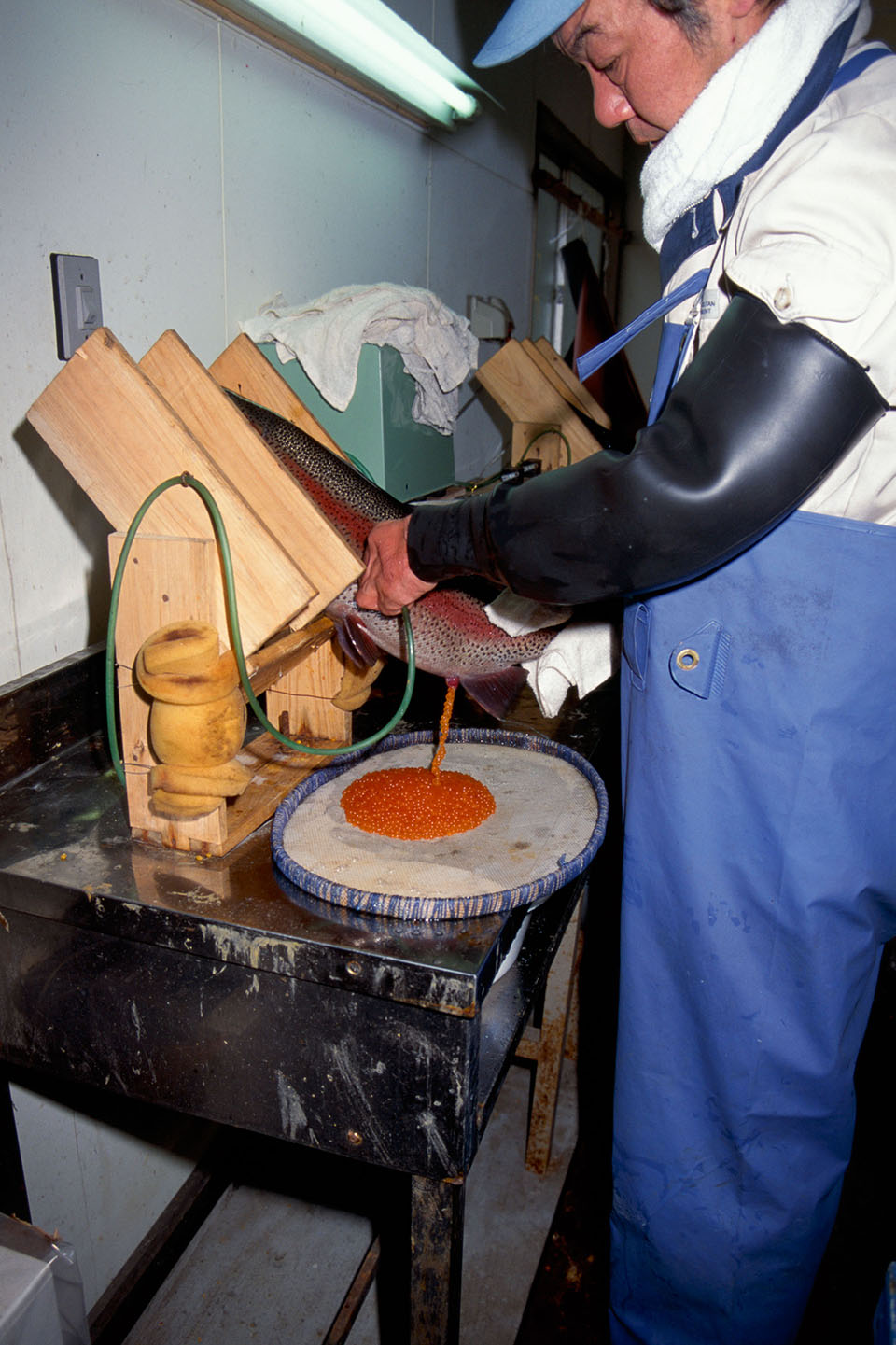 Rainbow trout egg collection (Okutama Town), 02/1995