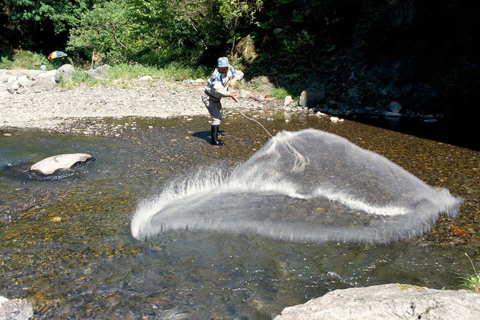 Catching masu salmon with a cast net (Okutama Town), 06/1995