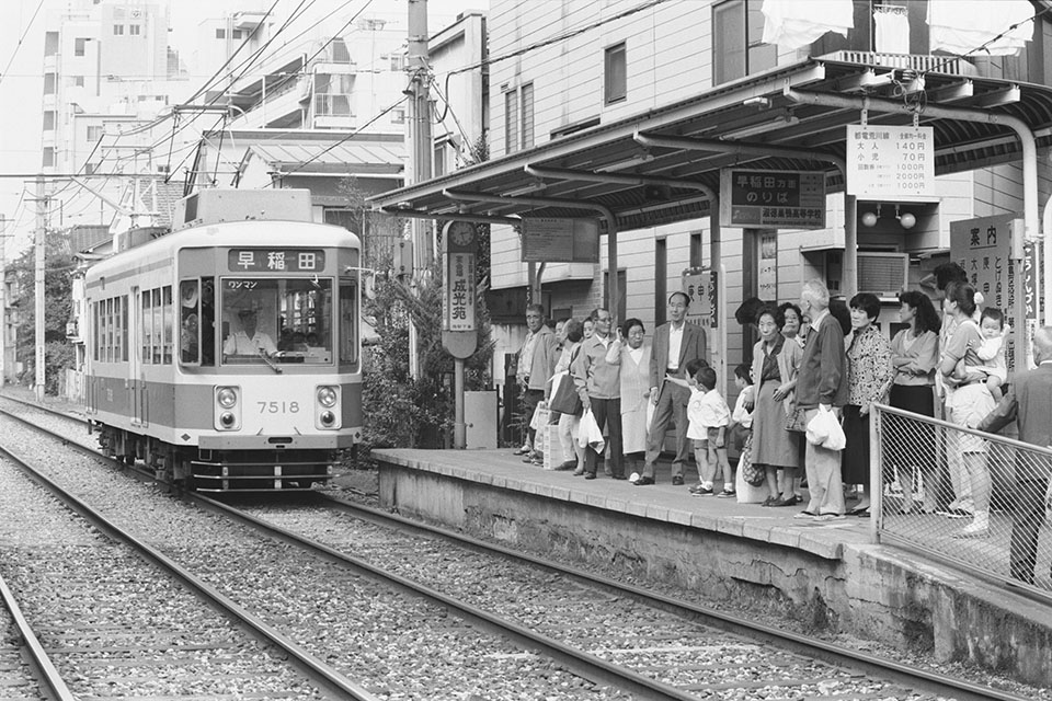 Koshinzuka Station, Toden Arakawa Line on a festival day (Ennichi), 09/1988