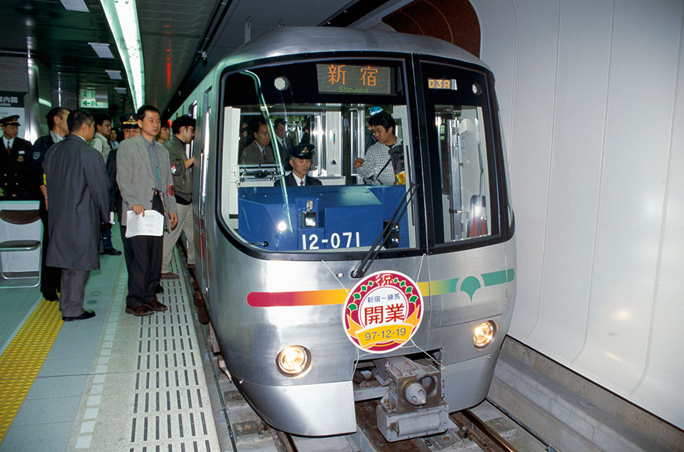 Toei Subway Oedo Line opening new commemorative railroad car, 12/1997