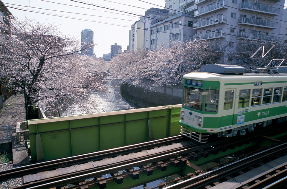 Toden Arakawa Line and cherry blossoms (Asukayama, Kita Ward), 03/2007