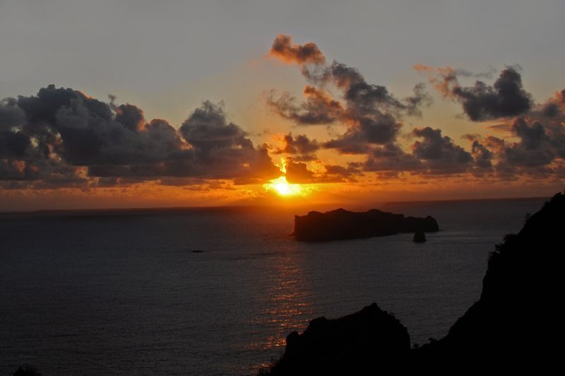 長崎展望台の日の出。取材中毎朝、日の出の撮影にチャレンジしたが、水平線上に雲がかかる事が多く、撮影出来たのはこの時だけだった。