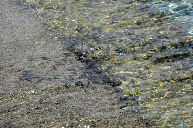 二見港防波堤の波打ち際には、たくさんの小魚たちが泳いでいた。