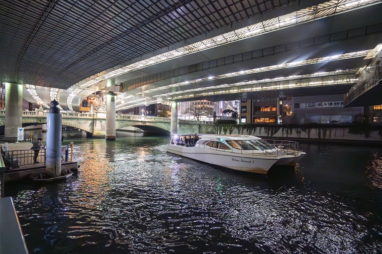 写真は、日本橋船着場の様子です。橋から日本橋川の方へ降りると乗船・下船場所があります。