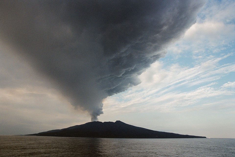 噴煙を上げる三宅島|平成12(2000)年9月19日