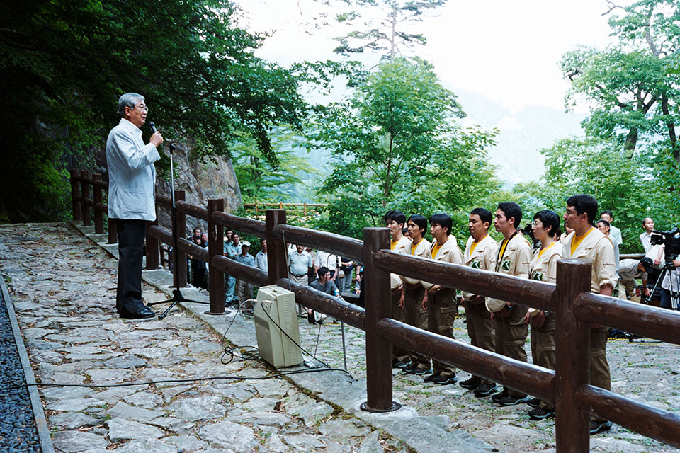多摩地域や小笠原などの豊かな自然を守る東京都レンジャー(自然保護員)が誕生し、平成16年7月、檜原都民の森で出陣式。