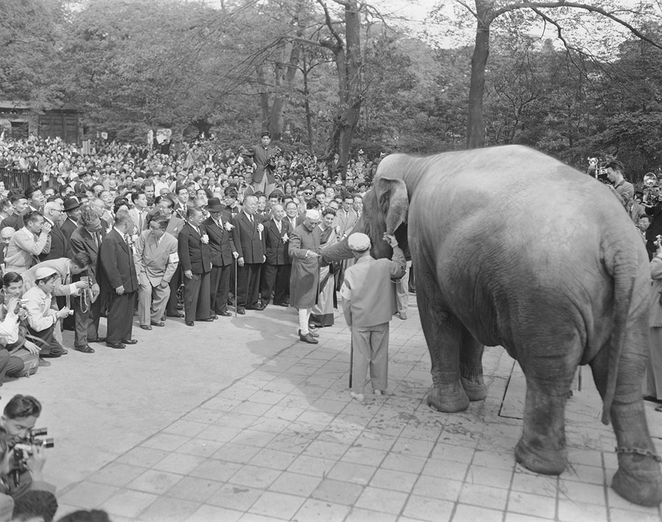 インドのネルー首相が来日。上野動物園で日本の子供たちへ贈ったゾウのインディラ嬢と再会した。